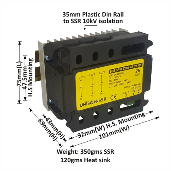 The Model 905 3-Phase Power Controller is a high-performance solid-state solution engineered for precise and reliable control of three-phase industrial loads. Designed for heavy-duty heating and power regulation applications, it delivers smooth power modulation, reduced electrical noise, and long operational life without moving parts.